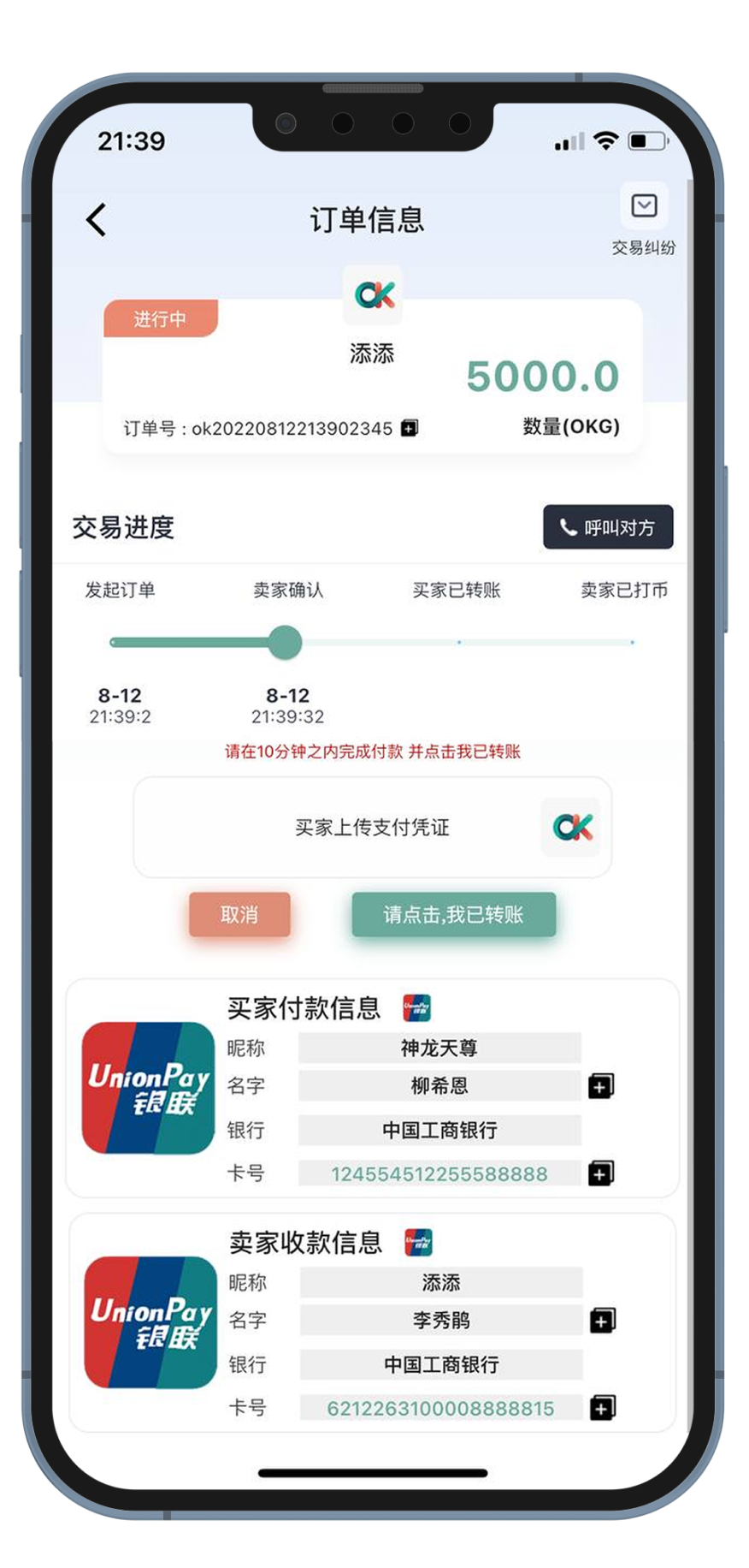 等待卖家核实金额之后进行打币 买币交易完成